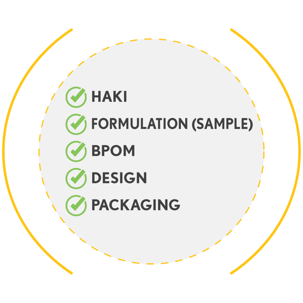 Kami menangani seluruh proses perizinan dan regulasi, termasuk BPOM, sertifikasi HALAL MUI, dan HAKI. Anda tidak perlu repot mengurus birokrasi, kami pastikan produk Anda legal dan aman untuk dipasarkan.